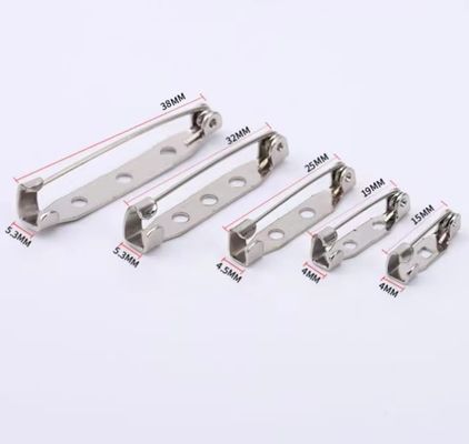সুরক্ষা পিনঃ এটি ব্যাজ তৈরির জন্য একটি সাধারণভাবে ব্যবহৃত আনুষাঙ্গিক, বিশেষত বৃহত্তর ব্যাজগুলির জন্য উপযুক্ত, এবং স্পাইক, প্রজাপতি buckles, ইত্যাদির চেয়ে আরও শক্তিশালী।সাধারণ নিরাপত্তা পিন একটি দীর্ঘ স্ট্রিপ আকৃতির এবং তরল soldering দ্বারা ব্যাজ পিছনে সংযুক্ত করা হয়. প্লাটিং প্রভাব ব্যাজ নকশা অনুযায়ী পরিবর্তন করা যেতে পারে। ব্যবহার করার সময়, একপাশে পিন সুইচ টানুন, পিনটি পোশাকের মধ্য দিয়ে যেতে দিন এবং তারপরে পিন সুইচটি বন্ধ করুন।