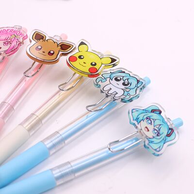 Custom Acrylic Clip Pens Soft PVC Cartoon Characters Gel Ball Point Pen with Logo Plastic Business Promotion Pen 7