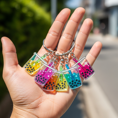Glitter style acrylic keychain — filled with sparkling glitter for a dazzling, eye-catching finish.